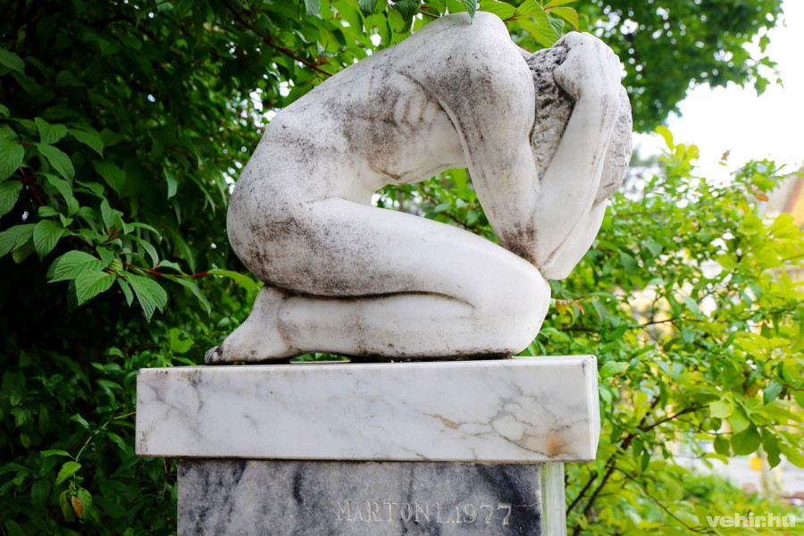 Az 1977-ben felavatott mű korántsem egyedi darab: a Marton Múzeumban (Tapolca) is látható belőle egy példány. A márványból készült alkotás igencsak beszédes. Alkotója szerint "az olyan munka, ami taszít, az elveszik." A szoborból áradó fájdalom teljességgel taszító, mégis magával ragadja az embert egy elveszett pillantásban.