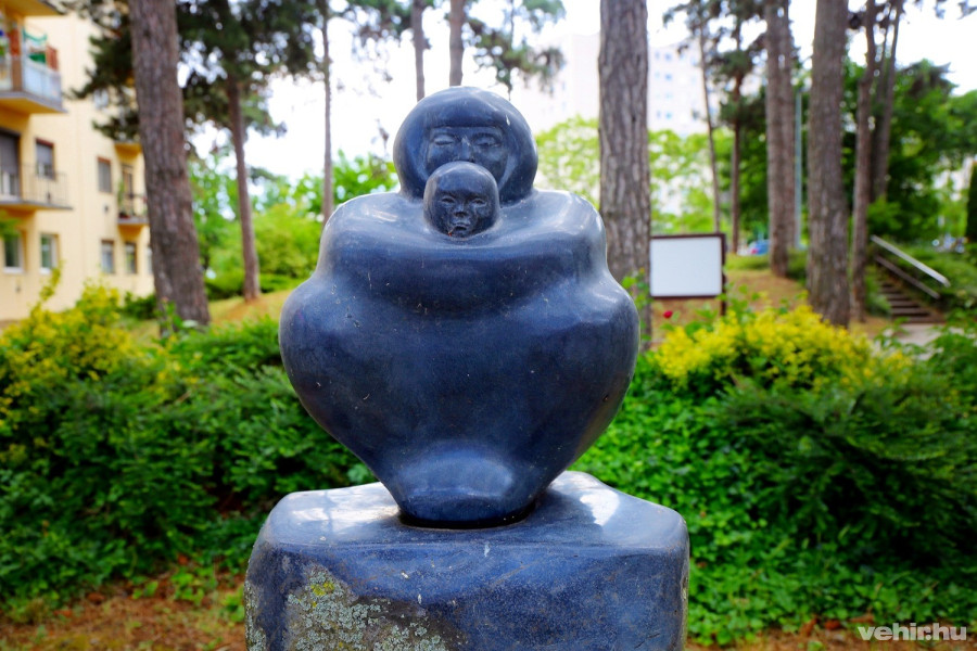 Két négyemeletes lakóépület közötti parkban bújik meg 2006 óta ez a kis bazalt szobor háttal a lakótelep és a város forgalmának. Nyugalmat keres, nyugalmat áraszt. Az anya a védelem maga, szinte beburkolja gyermekét. A pici kifelé, a nyugodt, zöld park hátulsó része felé tekint az ölelés melegében.