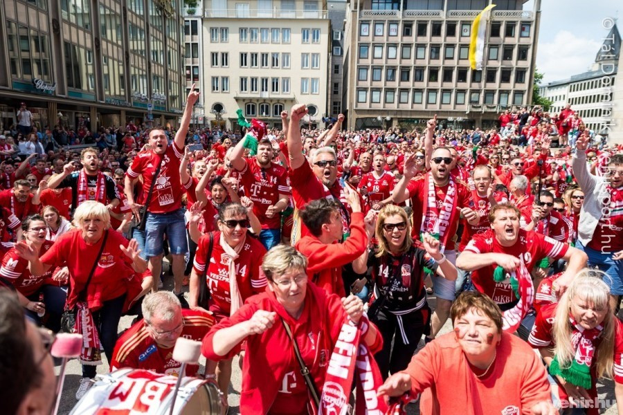 Akinek már volt szerencséje szurkolóként elkísérni a Bajnokok Ligája kölni négyes döntőjébe a veszprémi kézilabdacsapatot, pontosan tudja, hogy a hétvége egyik legfelemelőbb pillanata a vasárnap délelőtti gyülekező a dóm előtti téren. Az elmúlt években ugyanis hagyománnyá vált, hogy a Veszprém-drukkerek itt hangolnak a délutáni helyosztókra, majd innen vonulnak át közösen a torna helyszínére, a Lanxess Arénába.