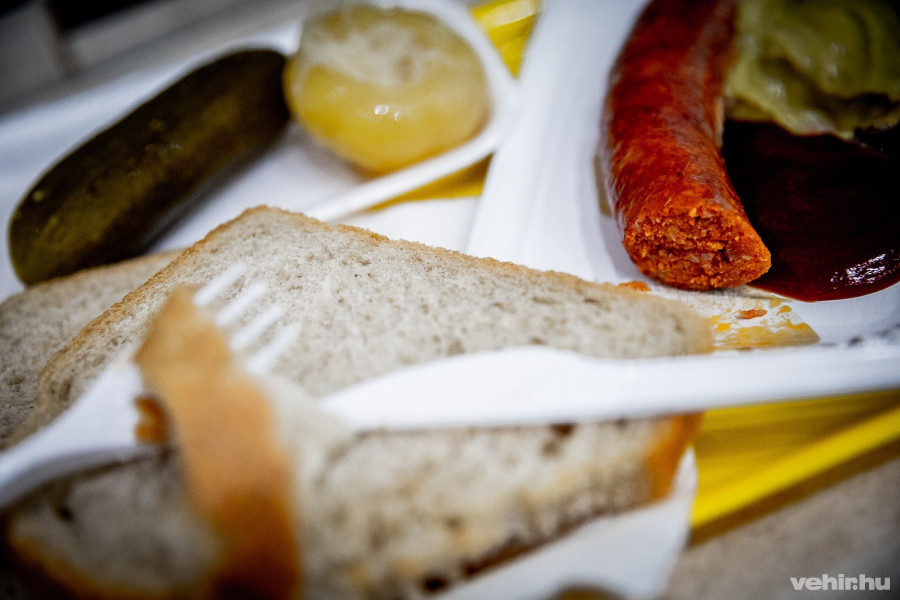Mivel mégiscsak piacon vagyunk, a hurka-kolbász kombináció mellett döntöttünk. Miközben szeleteltük a gőzölgő ételt, mellettünk jöttek-mentek az emberek, ki elvitelre kért egy napi menüt, ki leült a pulthoz elfogyasztani azt.
