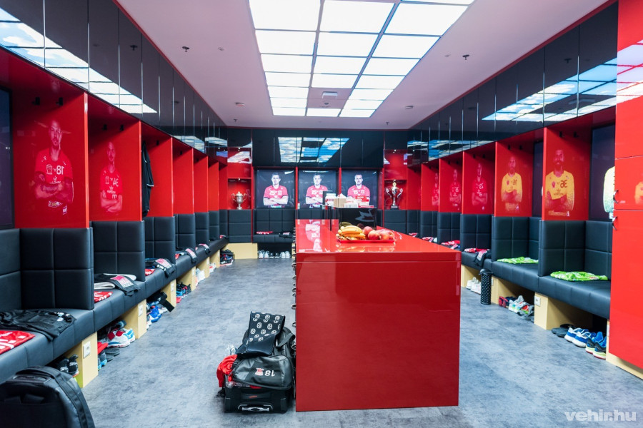 A helyiség közepén egy magas fényezésű, polírozott munkapad található, amely alatt minden játékos számára számmal ellátott újabb tároló áll rendelkezésére. Fontos megjegyezni, hogyha nem is a fenti színvonalon, de valamennyi öltözőhelyiségét felújították a közelmúltban.