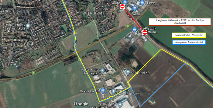 Annak érdekében, hogy az Almádi csomópont zárása miatt, az Almádi és Füredi úti É-D irányú forgalom továbbra is fenntartható legyen, a csomópontok között – párhuzamosan a 8. sz. főúttal – a meglévő utak jókarba helyezésével ideiglenes terelőutak kerülnek kijelölésre - írja a beruházó, amely feltöltötte a tervezetten szeptemberben induló tereléseket bemutató térképet.