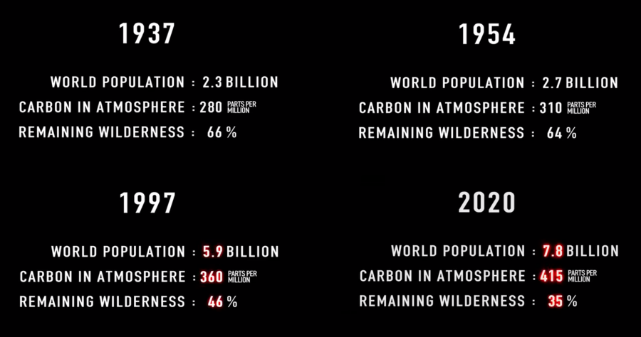 Az ősszel megjelent alkotás hozza ugyanezt az érzést, hisz látványosan mutatja be az élet sokszínűségét, ám amiért mégis különleges, húsbavágó és emberközeli, hogy a 93(!) éves Attenborough a saját élete alatt, az általa látott és tapasztalt hanyatlást mutatja be. Hanyatlást, hisz ha csak a számokat nézzük, 1937 óta 2,3 milliárdról 7,8 milliárdra nőtt az emberi populáció, amelynek következtében 93 év alatt 66%-ról 35%-ra csökkent az érintetlen vadon aránya a bolygón. De vannak itt még más érdekes adatok is: