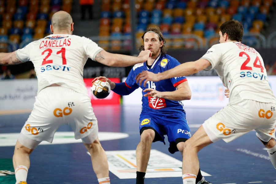 Remekül kezdett az Európa-bajnok, amely öt perc után már 4-0-ra vezetett. A hatszoros világbajnok franciák csak ezt követően lendültek játékba, de a folytatásban is a spanyoloké volt a jobb védekezés és kapusteljesítmény, így a meccs harmadánál 13-8-as előnyben voltak. Ezt követően egy 4-1-es sorozattal felzárkózott az ellenfél, amely ennek ellenére 16-13-as hátrányban volt a szünetben.