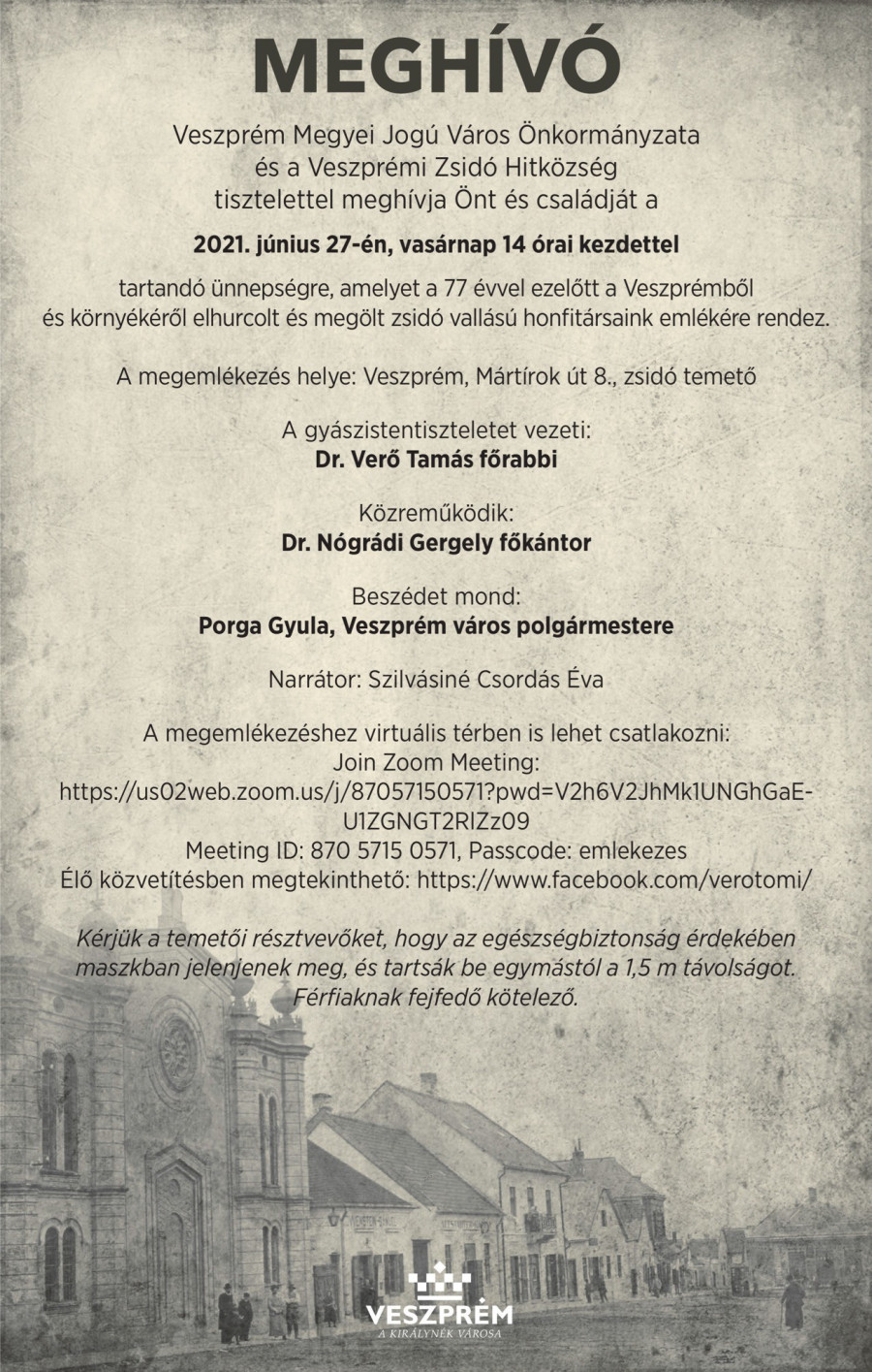 Meghívó a Veszprémi Zsidó Hitközség
