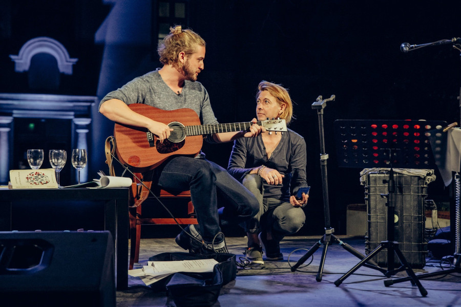 Játékszabályok: Minden este legfeljebb 10 kártyalapot játszunk ki. Nem tudjuk, miket, mert nem mi keverjük a paklit, és nem mi húzunk, hanem ti, akik jelen vagytok az esten. A kártyákhoz történetek, versek, dalok, személyes élmények kapcsolódnak. Olyanok, amelyeket nem árulunk el előre egymásnak sem. Ez a mi kockázatunk – és persze, a tiétek is.”