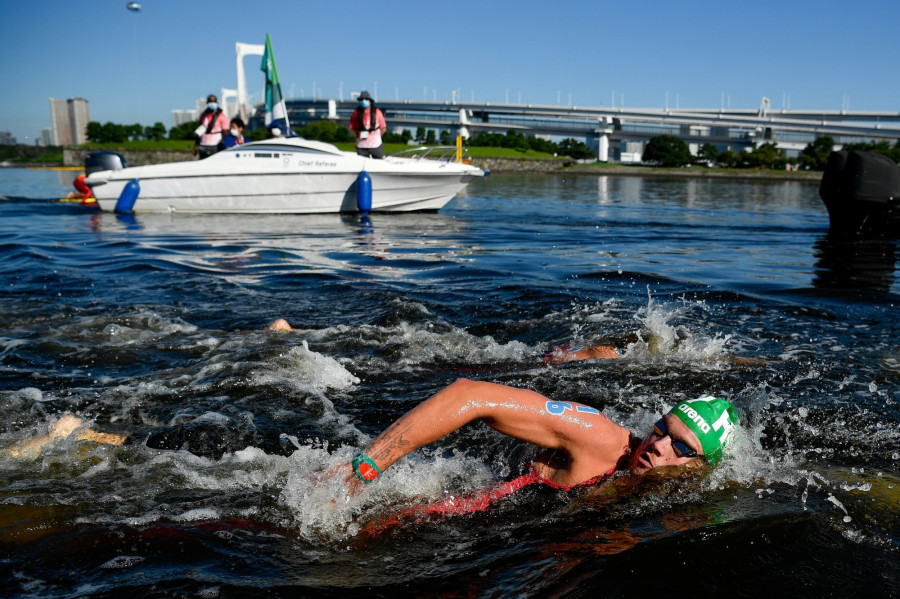 A 26 fős mezőny ragyogó, napsütéses időben ugrott vízbe a Tokiói-öbölben kialakított pályán, ahol hét kört kellett megtenniük a versenyzőknek. A szám világbajnoki címvédője, a német Florian Wellbrock azonnal élre állt és olyan tempót diktált, hogy elhúzott riválisaitól, előbb a francia Marc-Antoine Olivier, majd Rasovszky eredt utána.