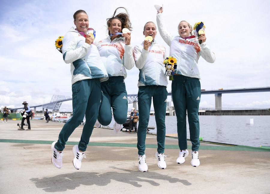 A női kajaknégyes a magyar küldöttség 18. érmét, közte a hatodik aranyat nyerte Tokióban.