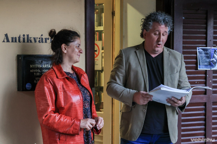 Az Ave Maria mellett még számos ismert, vagy kevésbé ismert mű is felhangzott pénteken kora este a belvárosi antikvárium előtt, valamint azokban a szűk utcákban, ahová akusztikailag elért az Utas és holdvilág előtt tartott mini-koncert dallama. A nemrég megalakult Komjáthy Kör égisze alatt megvalósult eseményen Mártony Zsuzsanna zeneterapeuta idézte meg az oratorikus dallamokat, aki mellett Zsiliniszky Cecília zongorázott. A rövid koncerthez aztán Ókovács Szilveszter is csatlakozott, aki Budapestről érkezett vissza szülővárosába, hogy részt vegyen az éneklésben, majd az antikváriumban a meghirdetett beszélgetésen.