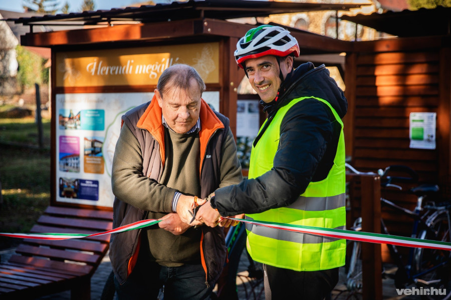 Az átadón részt vett a Magyar Kerékpáros Turisztikai Szövetség képviseletében Pénzes Erzsébet elnökségi tag is, aki mindenkit arra biztatott, kapják elő gyakrabban a bringákat. Egy ilyen szakaszon nyugodtan használhatják a gyerekek a bicikliket az iskolába járáshoz vagy a nyáron fagyizáshoz, ahelyett hogy a szülők fuvaroznák őket autóval a két település között. De a táblák a turisták segítségére is szolgálnak, akik a Veszprém-Herend bicikliút felől közelítve tudják így meghosszabbítani útvonalukat, s közben kifújni magukat a pihenőknél. Utóbbiakat egyébként nemcsak a települések turisztikai látnivalóit bemutató táblákkal szerelték fel (melyek Herend esetében a porcelán manufaktúráról, a Bakony élővilágáról adnak információkat), de kamerával is ellátták őket, így biztonságosan elhelyezhetők itt a kerékpárok, amíg valaki szétnéz a környéken.