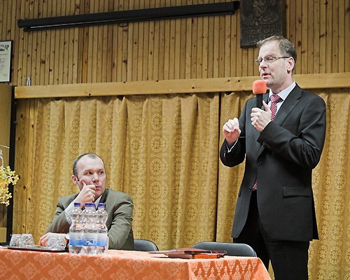 Dr. Navracsics Tibor fideszes országgyűlési képviselő, a párt parlamenti frakcióvezetője, zsúfolásig megtelt teremben, önkormányzati képviselők részvételével tartott fórumot egykori iskolájában, a Báthoryban.