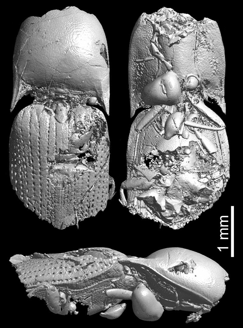 A pókról hamar kiderült, hogy az ún. kétfarkú pókok (Hersiliidae) családjának tagja. Egyik legérdekesebb külső jegye a névadó, farokszerűen meghosszabbodó szövőszerv. A másik vizsgált zárvány egy kis pattanóbogár volt. „A bogarak testét borító kitines váz vastagabb és keményebb, mint például a pókoké, ezért a pár milliméteres pattanóbogár lemodellezése nem okozott problémát a szegedi mikroCT számára" – magyarázta Dr. Szenti Imre. A pattanóbogár digitális, 3D-s modelljét ezután Dr. Robin Kundrata (Palacky Egyetem, Csehország) és Németh Tamás (Magyar Agrár- és Élettudományi Egyetem) vették tüzetesen górcső alá.