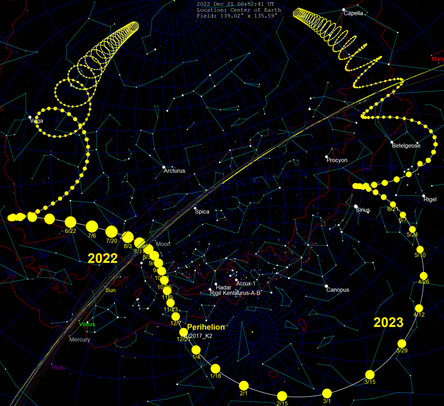 A nyár közepén várható az öt évvel ezelőtt felfedezett C/2017 K2 Panstarrs üstökös érkezése. Ez az akár több tíz kilométer átmérőjű üstökös évmilliókkal ezelőtt indult el a Nap felé az Oort-felhőből, és a csillagászokat is meglepte azzal, hogy már a Szaturnusz pályájának távolságában aktívvá vált. Július 14-én ér legközelebb a Földhöz, noha még akkor is majdnem kétszer olyan távol lesz tőlünk, mint a Nap. Központi csillagunkhoz december 19-én jár majd a legközelebb, amikor akár szabad szemmel is láthatóvá válhat – balszerencsénkre megint a déli féltekének jut a műsor látványosabb része.