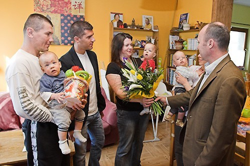 Dávid, Márk és Péter április 11-én lesznek egy évesek. A képviselők születésnapi ajándékcsomaggal és az anyukának szánt virágcsokorral, péntek délelőtt otthonukban, keresték fel a családot.