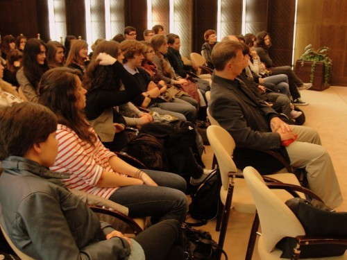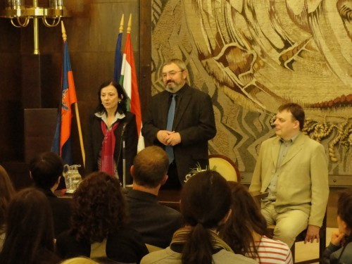 Debreczenyi János mesélt a diákoknak Veszprémről, bemutatva annak látványosságait, nevezetességeit és programjait.