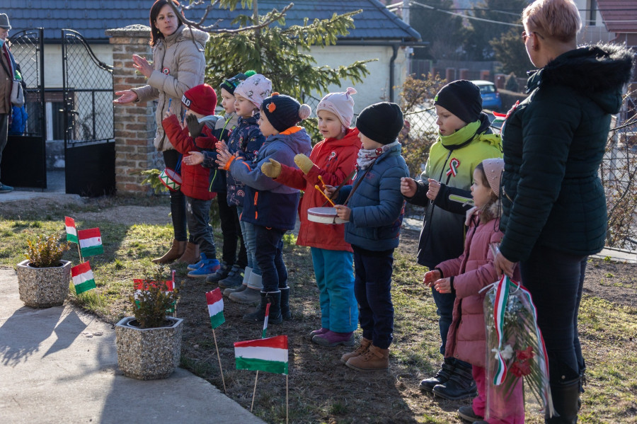 A képviselő arra kérte a megjelenteket, hogy a hosszú hétvégén tegyenek egy sétát az Alsóvárosi temetőben és hajtsanak fejet a 22 veszprémi '48-as hős emléke előtt. A Ficánka tagóvoda ovisainak műsorát követően a megmelékezők elhelyezték koszorúikat és virágaikat a kádártai hősi emlékműnél.