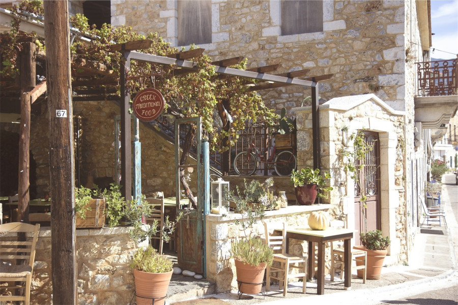 Családi, baráti társaságunk ebédelni akart. Elegánsan megterített teraszok, éttermek között válogathattunk, de kötöttem az ebet a karóhoz, hogy én egy igazi, hagyományos görög kiskocsmára vágyom. Megtaláltuk… A bejáratnál piros kendővel a nyakában egy jó hatvanas úr fogadott bennünket, és amikor megtudta, hogy magyarok vagyunk, ezt rögtön közölte is a többi vendéggel és megkaptuk a Budapest-asztalt. Mint kiderült, a vendégek összetételétől függően volt Prága-asztal, Szófia- és Berlin-asztal is. A piros kendős úr, aki Pírosz bácsiként mutatkozott be, dúdolva sétált az asztalok között. Mindenkihez volt néhány kedves szava németül, angolul. Amikor kértük az étlapot, közölte, hogy az nincs, itt csak egyféle étel van, azt is a vendégek főzik. Ezzel máris hozott két kosár krumplit, kést és tálat, hogy tessenek elkezdeni a krumlipucolást. Barátnőm ránézett a frissen manikűrözött körmeire, majd közölte, hogy előbb inna egy korsó sört. Pírosz bácsi karon fogta és a pulthoz kísérte, hogy csapoljon magának, ha szomjas…