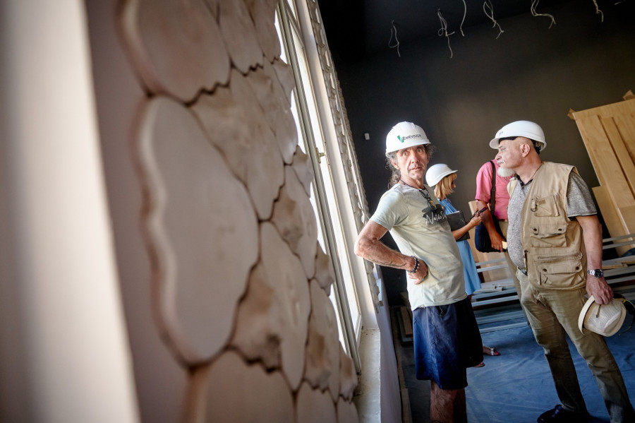 Kellerné Egresi Zsuzsanna még arra is figyelt, hogy a Veszprémi Petőfi Színházra jellemző, kimondottan egyedi fal kerámia motívumai az új épületben is díszítsék a falat.