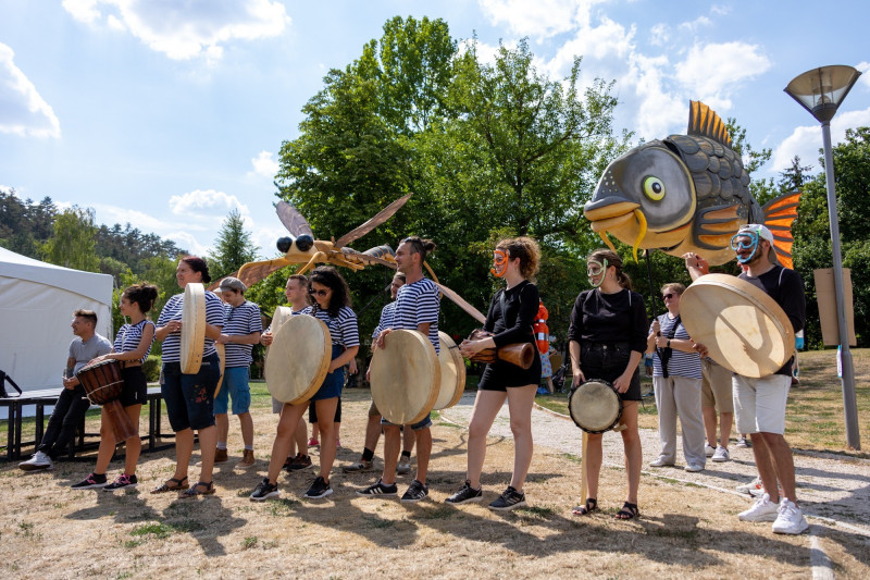 Habakuk király és Boróka királyné a régi vidámpark bejáratánál várta a kicsiket és nagyokat a Kabóciádé megnyitójára péntek délután. A királyi párt vízi élőlények óriásbábjai kísérték végig a patak mentén, miközben udvartartásukkal bevonultak birodalmukba a vidámparki tó túloldalára.