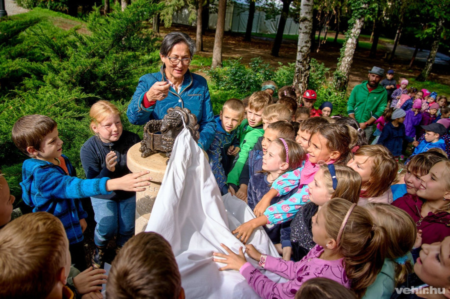 Brányi Mária, a könyvet olvasó álteknős leleplezésénél kisgyerekek segítségét kérte, akik már különböző rajzpályázatok kapcsán is jól ismerik a páncélos lényt. Az alpolgármester örömét fejezte ki, amiért a kavicsfogú álteknős még inkább beírja magát a köztudatba. Felszólalt Ferenczy Gábor is, a Pro Veszprém Nonprofit Kft. vezetője, aki büszke arra, hogy egy olyan érték válik kézzelfoghatóvá, megismerhetővé egy nagy közösség, jelen esetben egy város számára, ami egyedi.