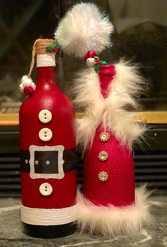 Mielőtt az üveg szelektívbe vinnéd a üvegeket, a téli hónapokra könnyedén karácsonyi dísszé alakíthatod őket. Az üvegek festéséhez használj természetes alapú festékeket, dekoráláshoz pedig vattát, gombokat, parafadugót.