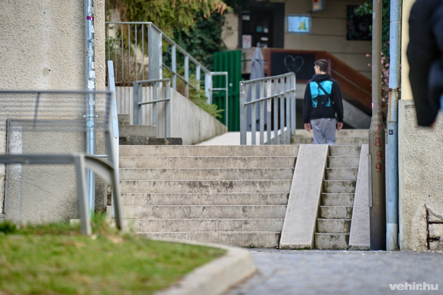 A másik probléma ott kezdődik, amikor kiszállsz az autódból, vagy éppen sosem volt autód, és úgy érzed, hogy kaland belevágni egy rövidebb sétába a belvárosban. Bármiben lefogadom, hogy aki a lépcsők melletti rámpákat tervezi, az a mosdóba is autóval jár, de aki jóváhagyja őket az is, mindenesetre még sosem nézett a lába elé a városban közlekedve. A Fortuna-udvarnál lévő lépcsők mellett nem egyszer látni, hogy inkább cipelik a babakocsikat fel-le, mert se a kerék méretek nem stimmelnek, se nem lehet biztonságosan letolni a gyermeket a nagyjából – költői túlzással élve- hetven fokos meredekségű rámpán, és az elején kialakított „ugratóról” még nem is beszéltünk. A jogszabály szerint legfeljebb 2 cm-es szintkülönbség fogadható el. Ennek azért nekifutnék még egyszer – sokszor szó szerint is. Ez csak egy kiemelt példa, de azért városszerte jellemző. A csúszásmentes kialakítás sok helyen valószínűleg a hab lett volna a tortán, azt meg sokan nem szeretik. Tényleg, csak egy kicsit kellene körbenézni, és átgondolni, nem csak a közbeszerzés pontjai mellé pipákat tenni. Veszprémben van egy különös jelenség, a „minden csoda három napig tart” elvén végül megszokjuk azt is, ami alapjaiban nehezíti meg az életünket.