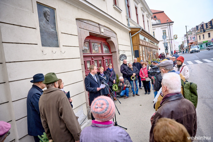 Az egykori Korona szálló – ma cukrászda és étterem – épülete előtt hétfő délután is számos veszprémi intézmény és civil szervezet, valamint lokálpatrióta érzelmű lakos gyűlt össze, hogy lerója tiszteletét a költő előtt.