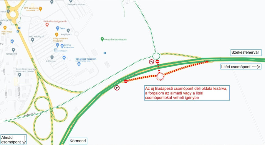 Az új budapesti csomópont déli oldali körforgalmában, és a híd alatt befejező munkákat fog társaságunk végezni. A biztonságos munkavégzéshez a körforgalom és a híd alatt átvezető út ütemezetten lezárásra kerül, tájékoztatta a veszprémieket a kivitelező.