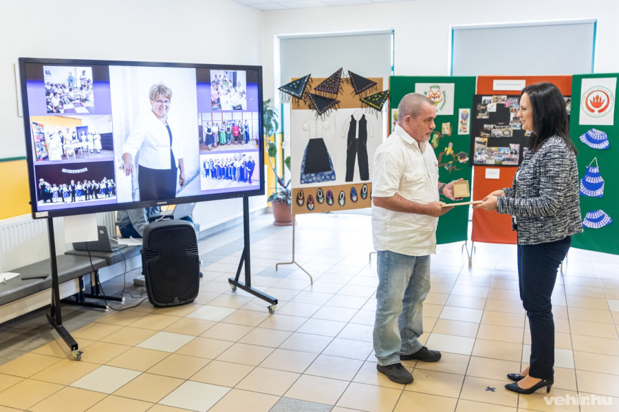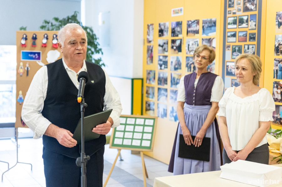 Ezt dicsérte Heilig Ferenc, a Veszprém Vármegyei Német Nemzetiségi Önkormányzat elnöke is. Felelevenítette: a rendszerváltás idején a megye hat településén működött német nemzetiségi általánis iskola, ma 25 településen – Veszprémben három intézményben is – találhatunk olyan oktatás, ami a német nyelv mellett a magyarországi németek hagyományait is megismerteti a gyerekekkel. A Dózsában zajló oktatás színvonalát az is bizonyítja, hogy rendszeresen találkozhatunk az itt végzettekkel a Lovassy német tagozatos gimnáziumában is – mutatott rá az elnök.
