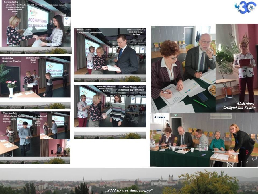 A zsűri a nyilvános előadáson bemutatott PowerPoint prezentációkat is értékelve hozta meg döntését. Az írásbeli (online beadott) feladatok és a bemutatók pontszámai alapján alakult ki a díjazottak névsora. A „2023 sikeres diákszerzője” díjazottai: 1. hely: Kovács Zsófia, 2. hely: Gaál Kolos, 3. hely: Nagy Nándor.