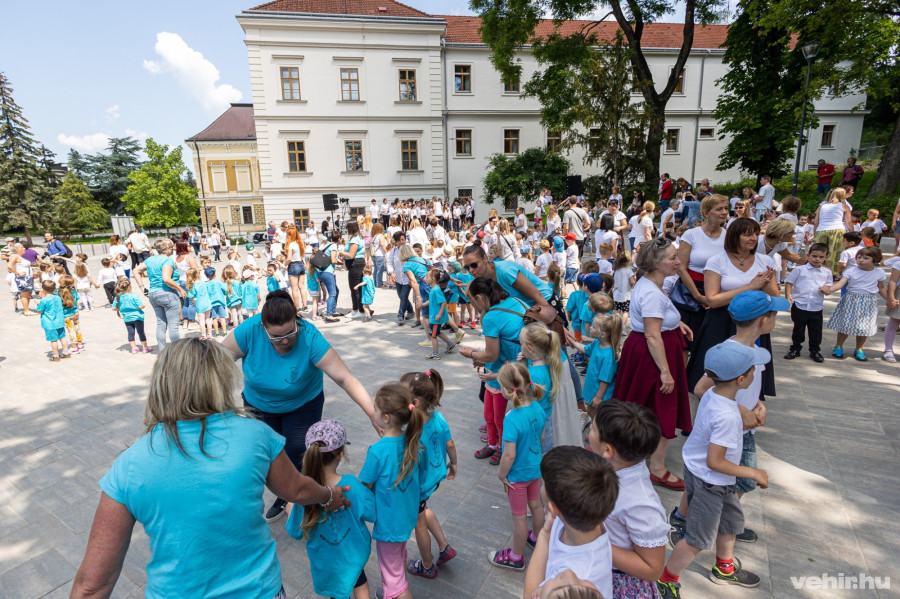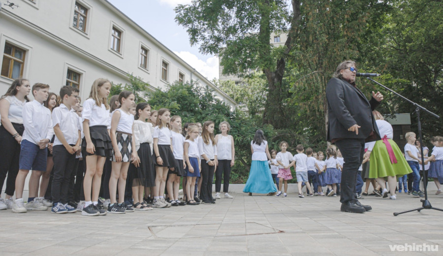 A dal nem sokkal 11 óra után csendült fel a téren, ahol Szarka Tamás vezetésével egyszerre énekelték a gyerekek, akik láthatóan már korábban begyakorolták a szöveget és a hozzá kapcsolódó egyszerűbb táncmozdulatokat.