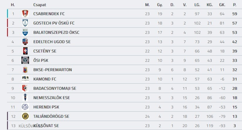 A második Öskü ellentmondást nem tűrve, 7-0-ra diadalmaskodott a Nemesszalók felett, így két pontra megközelítette az éllovas, ezen a hétvégén szabadnapos Csabrendeket. Mindez azt jelenti, hogy a jövő hétvégi utolsó fordulóban fog eldőlni a bajnoki cím sorsa. Ráadásul a két élcsapat éppen egymás ellen zárja az idei sorozatot.