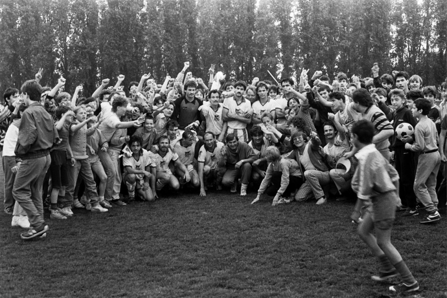 Ám az élet nagy rendező, és amilyen szomorúak voltak a VSE-sek szerdán, annál boldogabban ünnepeltek vasárnap. Június 12-én is egy időben kezdődtek a meccsek. Az első félidőben Veszprémben nem esett gól, míg Dunaújvárosban három is – valamennyit a hazaiak szerezték. Aztán a folytatásban nagyot változott a világ. A szegediek kiegyenlítettek, a veszprémiek pedig egy perccel azután, hogy Onhausz Tibor kiállítása miatt létszámban megfogyatkoztak, Horváth I László, azaz Bika fejesével megnyerték a meccset, ezzel megszerezték az aranyérmet. Óriási ünneplés kezdődött a pályán, a bajnokcsapat félmeztelenre vetkőztetett játékosait lovashintón kocsikáztatták körbe a pályán a diadalittas szurkolók között. Határtalan volt az öröm, hiszen sporttörténelmi pillanat részese lehetett az ott jelenlevő mintegy hatezer ember.