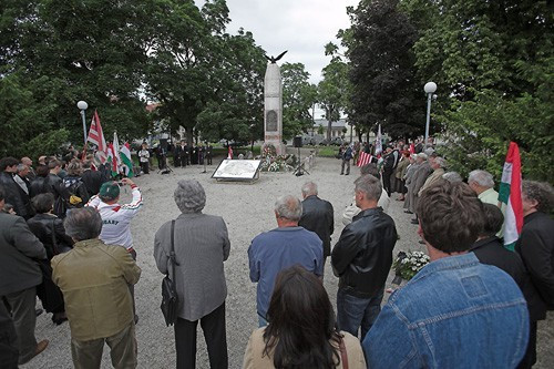 Ezt követően Tábori Piroska Üzenet Erdélyből című versét mondta el Migray Barbara. Tóthné Zita, az egyesület elnöke sorolta a trianoni veszteségeket, majd Zeitler Gusztáv, a Padányi iskola történelem tanára mondott ünnepi beszédet. Krakkó Rudolf, a Szatmárnémeti HID Egyesület elnökének megemlékezése előtt Dsida Jenő: Psalmus Hungaricus című megzenésített versét hallhatták a megjelentek Nagy Feró előadásában, felvételről. A koszorúzás előtt a három történelmi egyház képviselője, Márffy Gyula katolikus érsek, Isó Zoltán evangélikus lelkész és Závodi Zsuzsanna református lelkész imát mondtak el a magyarságért.