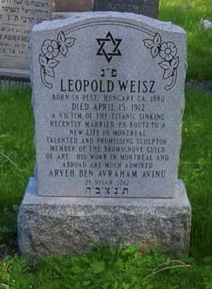 Weisz Lipótot Montréalban temették el, a sírján pedig ez a felirat áll: „Leopold Weisz, született 1880 körül Magyarországon. 1912. április 15-én halt meg a Titanic katasztrófájában. Nemrég házasodott, és kezdett új életet Montréalban. Tehetséges és ígéretes szobrász, a bromsgrove-i ipartestület tagja, munkáira Montréalban és külföldön egyaránt csodálattal tekintenek.”