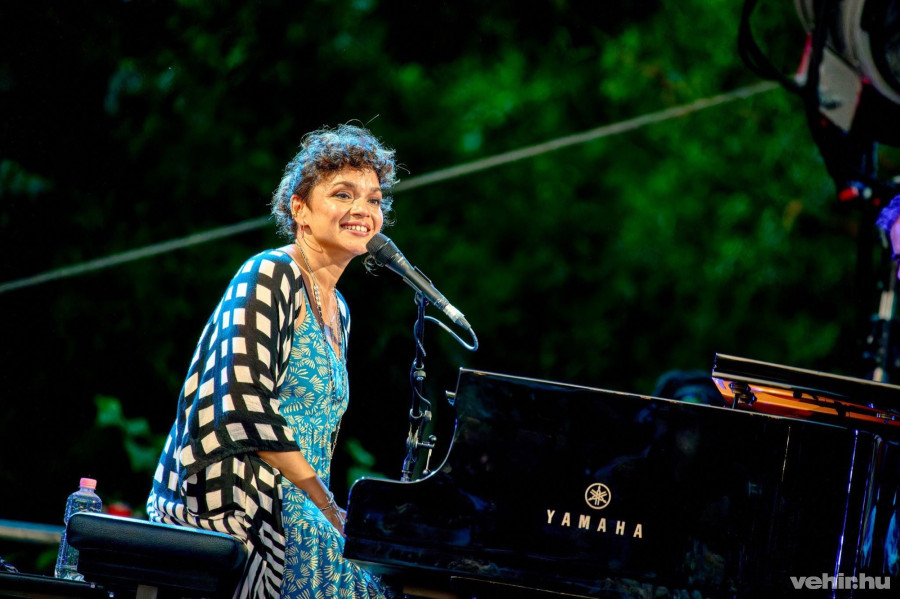 A koncert előtt zizegett a tömeg, tömött sorok a pultok előtt, hőség, a ragadós embermasszában pedig nehéz elengedni magad. Ilyenkor minden várakozással töltött perc éveknek tűnik, és akaratlanul arra gondolunk, persze, hiszen egy Grammy-díjas díváról van szó, majd érkezik, amikor érkezik. Pedig Norah Jones minden, csak nem díva, legalábbis a szó pejoratív értelmében: szinte észrevétlenül jelent meg a színpadon, ült le a zongora elé, és amikor a hangja betöltötte a Historia Kertet, a tömeg egy emberként hallgatott el.