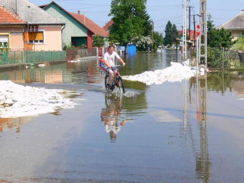 Összedőlt házak, már sírni sem tudó tulajdonosokkal, felnyitott tetejű autók, amiknek sár van az utasterében, szőnyegek, és ruhák kiteregetve mindenütt. A tegnapi gátak, ma bűzlő homokzsákok csupán, a tegnapi vízszörnyeteg, ma vízátfolyás, mely szúnyoglárvák milliárdjait dajkálja és kész a fertőző miazmákat a védekezésben megfáradt emberekre zúdítani.