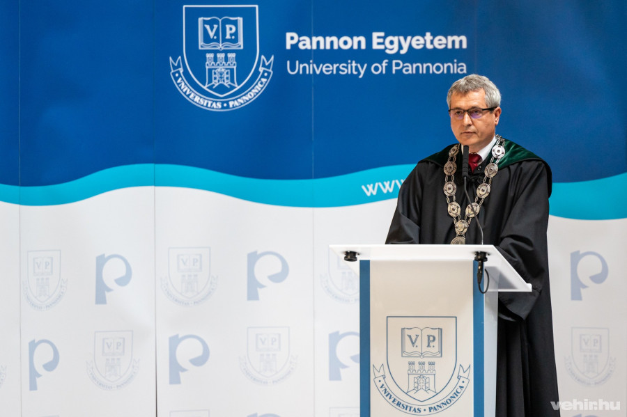 Gelencsér András, a Pannon Egyetem rektora szólt elsőként a díszoklevél várományosokhoz. Úgy fogalmazott, az intézményhez való tartozásnak három rendkívül erős pillére van. Az egyik a szakmai tudás, amely a felkészült oktatóknak, valamint a színvonalas oktatásnak köszönhető. Amikor az egyetem folyosóin álló szobrokra néz az ember, nem csupán emléket lát, hanem egy szellemileg meghatározó, identitásképző alkotást.