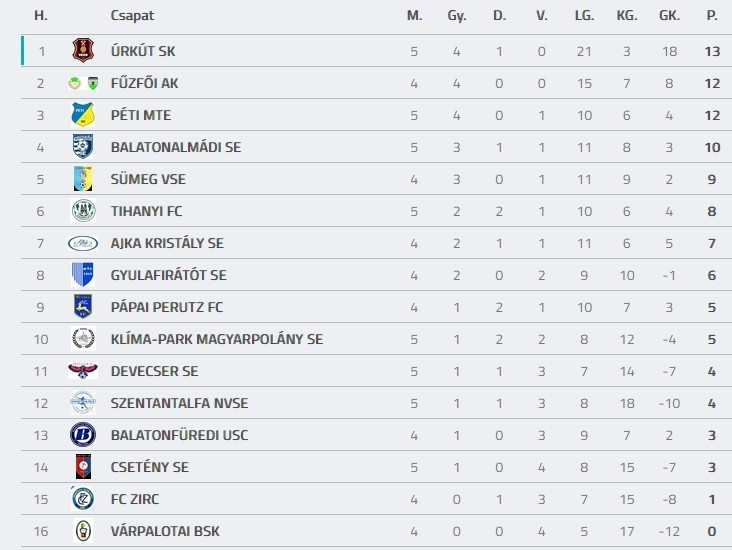 Az úrkútiak pontvesztése egyben azt is jelenti, hogy már csak a Fűzfő százszázalékos a bajnokságban. Nem lesz azonban könnyű dolguk a hétvégi, 6. fordulóban a tópartainak, hiszen a Tihany érkezik hozzájuk.