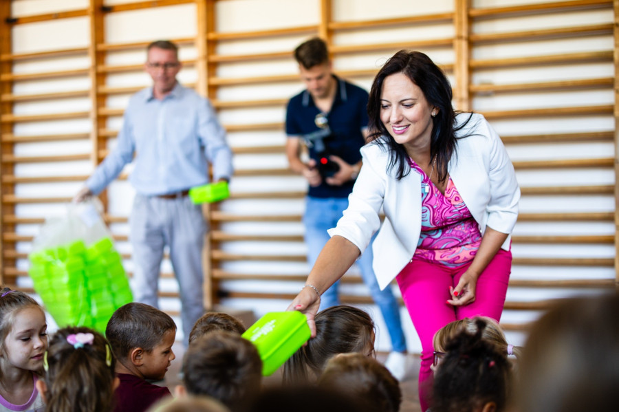 Évek óta hagyomány, hogy szeptember beköszöntével minden elsős kisdiák kap egy-egy uzsonnás dobozt, amelyben szállíthatják a tízóraijukat és az uzsonnájukat. Így történt ez szeptember elején is. A Veszprémi Hulladékgazdálkodási Közszolgáltató Nonprofit Kft. képviseletében Czaun János ügyvezető igazgató, az önkormányzat képviseletében pedig Hegedűs Barbara alpolgármester és Halmay Gábor önkormányzati képviselő osztotta a dobozokat elsőként a Dózsa György Általános Iskola diákjainak.