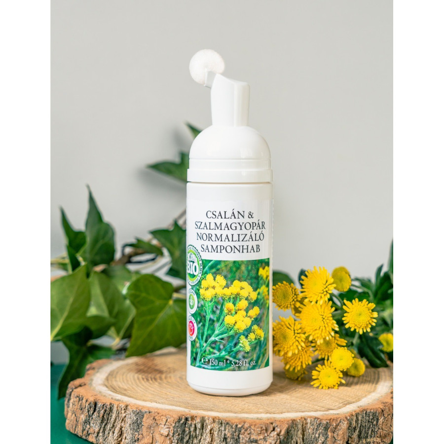 Egyesek a fokozottabb hajhullásnak szeretnének véget vetni, míg mások a korpásodással küzdenek. Bármilyen hajtípussal rendelkezünk, akár szárazzal, akár könnyen zsírosodóval, dönthetünk a bőrbarát, természetes megoldások mellett. Az egyik legkelendőbb például a Csalán-Szalmagyopár Normalizáló Samponhab, amely mérsékli a zsírosodást, így ha efféle problémával küzdünk, ideális választás lehet számunkra.