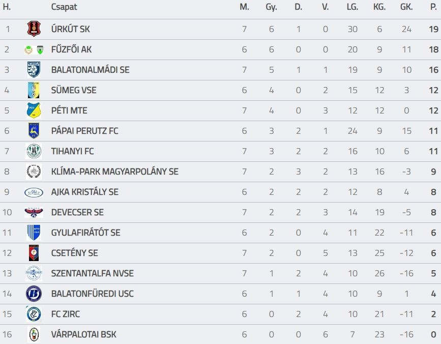 A labdarúgó vármegyei élvonal hetedik körében a Magyarpolány 3-3-as döntetlent játszott a Devecserrel, míg a Sümeg három ponttal távozott Pétről (0-2). A rátótiak nem tudták megnehezíteni az éllovas Úrkút dolgát, amely 6-1-re diadalmaskodott.