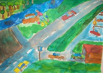 Úgy véli, lehet látni a pályamunkákból, melyik érkezett vidéki iskolából, melyik a városiból. Az utóbbiban mindig kietlen, falanszter jellegű, magas házakat ábrázolnak. A falusiban megjelenik a környezet, a rendőr és a tűzoltó természetes része a történéseknek. Teszik a dolgukat, de közben a madarak ugyan úgy röpködnek. Nem a felborult egyensúlyt ábrázolják. Ezen kívül a gyermekek munkáiból az is megtudható, melyiket készítette kislány, és melyiket kisfiú. A fiúk sok katasztrófajelenetet ábrázolnak, mintha annak örülnének, hogy baj van. Látszik, hogy nem ijednek meg, ha valami rossz dolog történik. Ábrázolják, amit elfogadnak. Elfogadják, hogy a bűnözés része az életnek. Ez az életszemlélet a személyiségfejlődésre is kihat.