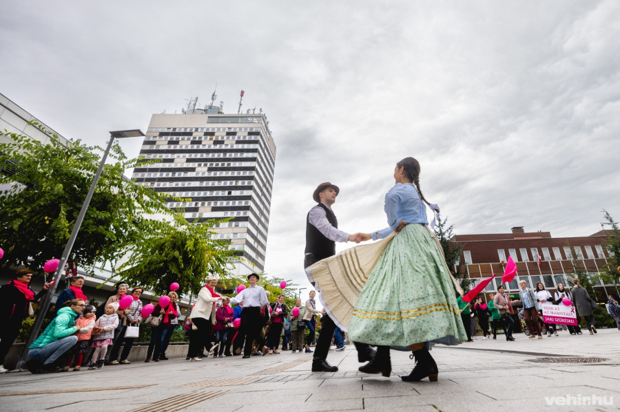 A séta ezután vette kezdetét, amelyen ott volt Ovádi Péter, országgyűlési képviselő is, valamint a Veszprémi Petőfi Színház művészei is, akik már régóta támogatják azt a munkát, amit a Fagyöngy Egyesület végez. A Kossuth utcán a Veszprém Bakony Táncegyüttes néptáncosai várták a sétán résztvevőket, ők vidám táncházzal készültek, ezzel is inkább az ünnepi hangulattot fokozva egy fontos prevenciós megmozdulásban.