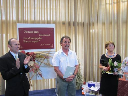 Porga Gyula alpolgármester most két kiváló tanárnak, Vörös Lászlónénak és Szalai Tamásnak adta át az aranyérmeket. A jutalmazottak a Simonyi Iskola tanévzárójának keretében vehették át a Pro Meritis elismerést, amelyen 47 kitűnő tanulót is megjutalmaztak.