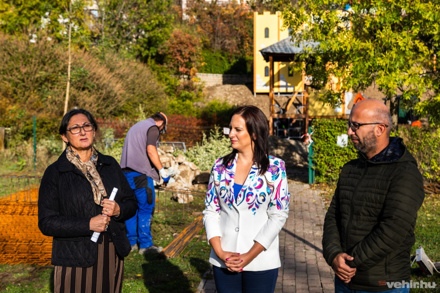 Sándor Tamás, a 30 TÉR Kereskedelmi és Tervező Kft. kivitelező cég képviseletében a Rézsűs játszótér felújításának részleteire tért ki: a régi rézsűs felületet egy új technológia segítségével újítják meg, helyszíni gumiburkolat kiépítésével. Jelenleg az aljzatbeton kialakítása zajlik, egy acélháló tartja majd stabilan a rézsűt, amelyre a gumiburkolat kerül. A játszótér párhuzamosan futó régi csúszdái helyett újakat telepítenek majd, és várhatóan decemberben fejezik be a felújítást.