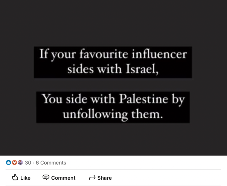 A hazai influenszerek két detox-tea reklámozása, meg az új, hajnövesztő epres gumimaci szopogatása között megosztják velünk magvas gondolataikat a háborús helyzetről, bevágnak egy-két négy évvel ezelőtti képet a piszkos arcú szíriai kisgyerekekről, „freepalestine” hastag-gel a dezinformáció jegyében. Megnézzük, ahogy Zimány Linda, a magyar Britney Spears és Dr. Szöszi bámulatos keveréke negyvennyolc színben lefotózza az előszoba tükrében ugyanazt a blézert, rendelünk valamelyik kódjával az így 95%-kal olcsóbb fehérjeporból, aztán éjszaka összesírjuk a természetes hernyóselyem párnánkat a szenvedő kisgyerekek gondolatától.