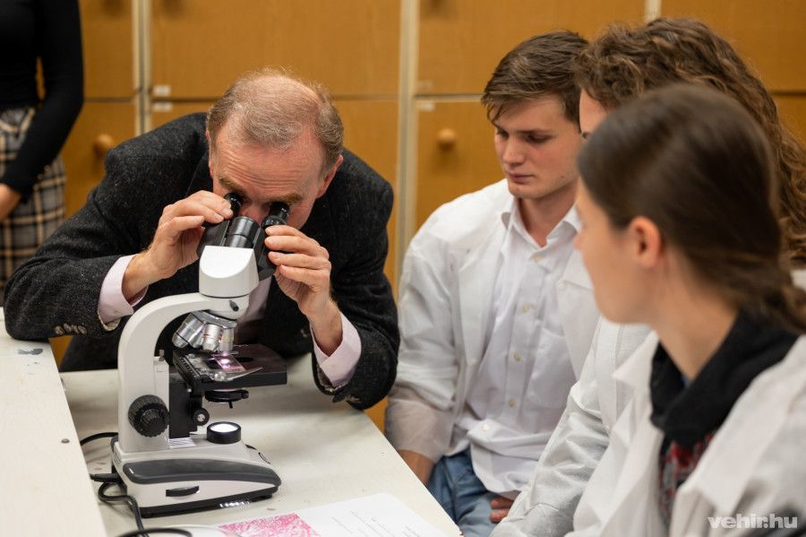 Schekman a Nemzeti Tudósképző Akadémia (NTA) meghívására érkezett városunkba, hogy részt vegyen a Lovassyban egy laborgyakorlaton, majd a diákok rendelkezésére álljon, akik lelkesen ostromolták is kérdéseikkel.