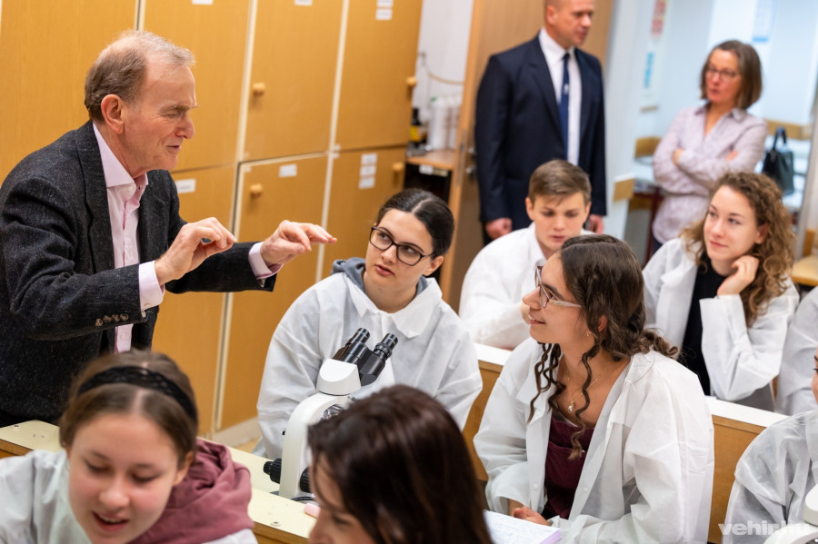 Porga Gyula polgármester délelőtt a Városházán fogadta a tudóst. A városvezető az NTA programjával kapcsolatban azt mondta: Veszprém azzal a reménnyel csatlakozott a középiskolásokat megszólító programhoz, hogy ne csak vendégként fogadhassunk városunkban Nobel-díjasokat, hanem innen jusson el valaki a legrangosabb tudományos elismerésig. A tudományos pálya olyan életút a polgármester szerint, amin érdemes elindulni, ezért fontos, hogy a fiatalok példaképekkel találkozzanak. A veszprémi diákokat Hegyi Péter, az NTA programigazgatója is méltatta. Mint mondta, a Lovassy méltán szerepel a rangsorok élén, a diákokat ma lelkesnek és elkötelezettnek látták. Az őket megszólító programban mindent megtesznek annak érdekében, hogy számukra biztosítsák a tehetség kibontakozásához szükséges feltételeket.