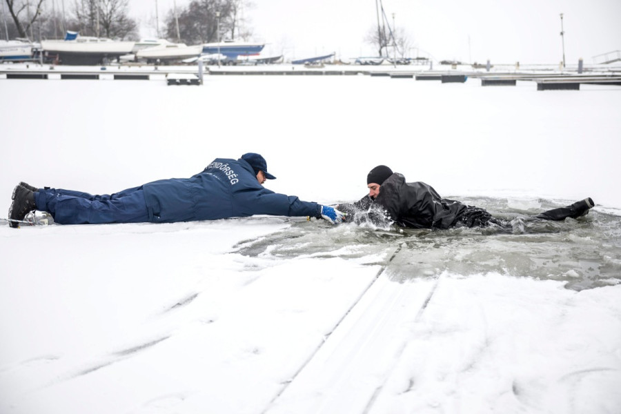 - Igyekezzünk a lábunkkal a jég szélét elérni és a part felé lökni magunkat, illetve segítséget kérni.